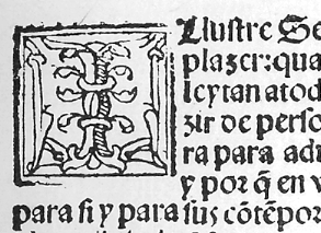 Nuestro Abecedario Industrial y del Comercio se nutre principalmente de creaciones populares, pero el juego con la forma de las letras es una constante desde los tiempos de los manuscritos. Las capitulares, o letras iniciales de un capítulo ricamente decoradas, son un buen lugar para estas transgresiones. Las capitulares con juego de letras tienen su momento de gloria en la Edad Media. Luego pasan a la imprenta de tipos móviles, bajo la forma de grabaditos de madera que se reutilizan de una ediciones a otras, como esta I de La Lozana Andaluza (1528), convertida en vástago de planta: