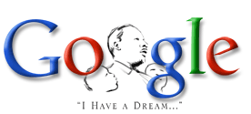 El diseño gráfico contemporáneo no ha hecho mucho uso de este recurso, a decir verdad. Una excepción famosa y muy divertida es Dennis Hwang, el jovencísimo grafista que realiza los logos festivos de Google (llamados doodles). Hwang juega con el hecho de que el logotipo de la marca, con su típica alternancia cromática, es suficientemente conocido para proponer variantes que en un contexto más libre no serían reconocidas. Como ejemplo valga este logo conmemorativo del día de Martin Luther King (el 16 de enero del 2006). La verdad es que este tipo de soluciones no están muy lejos de algunas de las creaciones populares de nuestra recopilación, como ésta y las dos que le siguen. Pero donde el arte de Hwang brilla más es en los logos en los que intervienen modificaciones a más de una letra, como por ejemplo... Pero ése es precisamente el tema de otra entrega. ¿O creían los lectores que el Abecedario Industrial y del Comercio ya había terminado de explorar este asombroso mundo?